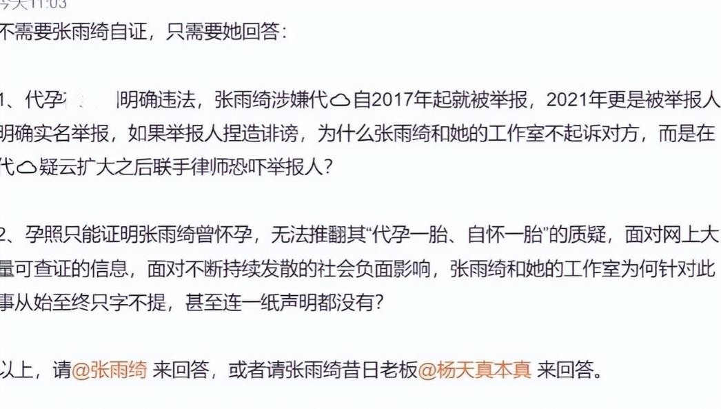 而张雨绮事件,则将整场风暴推向顶峰——举报内容直指“非法代孕”“律师施压”“破坏他人婚姻稳定”等多重违法失范行为,每一项指控均附有可追溯的时间节点与实物佐证。