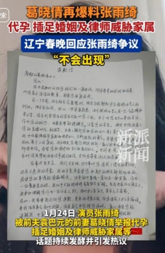 1日,袁巴元前妻葛晓倩通过实名认证账号发布长文,正式向有关部门提交对张雨绮的书面举报材料。